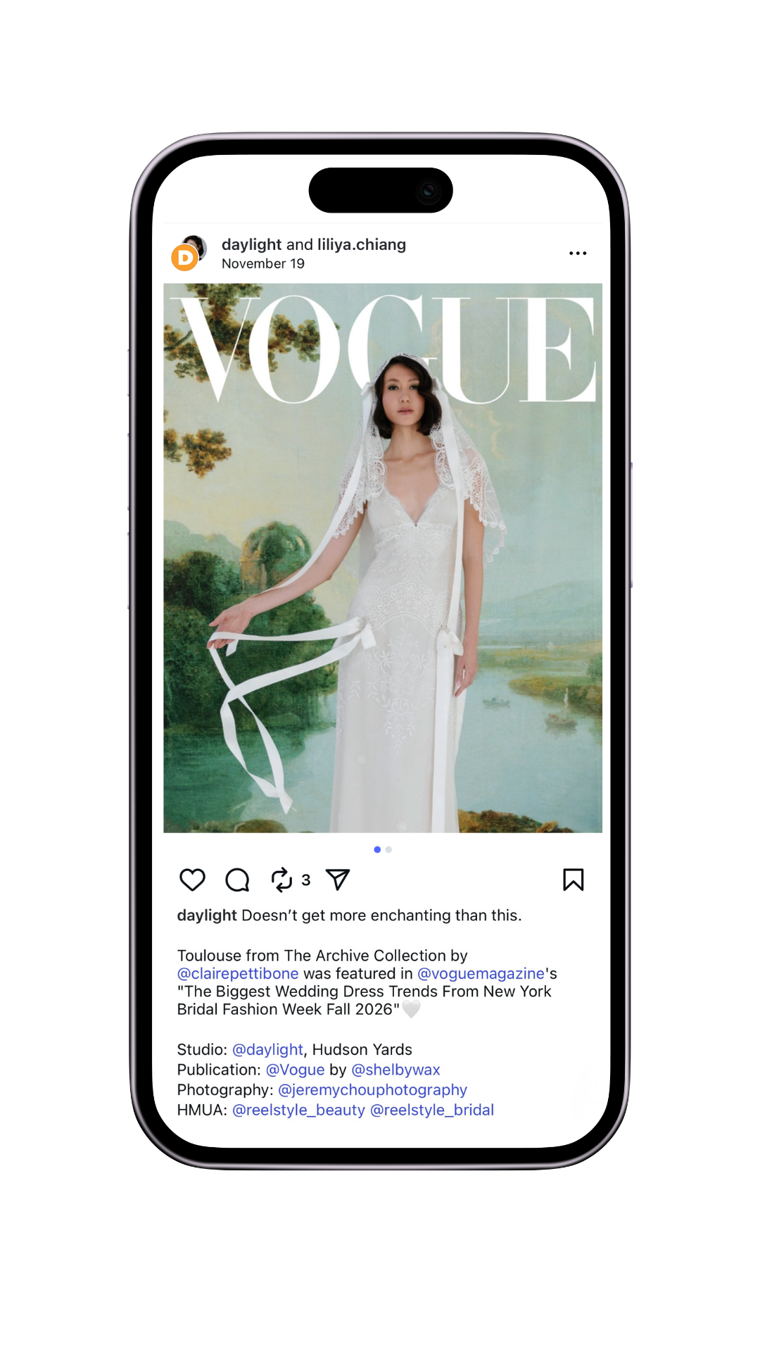 Claire Pettibone showcased her archive collection at Daylight Studio for New York Bridal Week. This is a sampling of reels and posts made for the recap of the event.