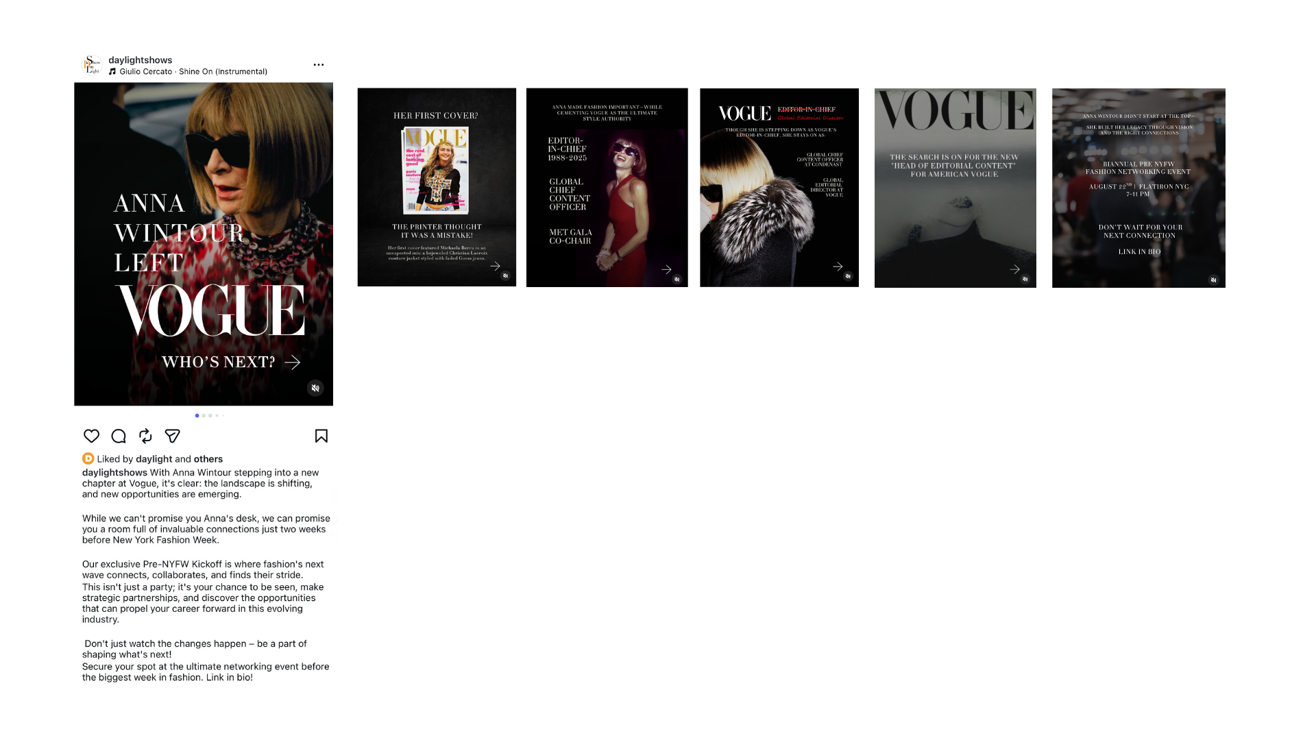 Platform ready social media content tailored to each brand and campaign, including static posts, carousels, stories, and short form video. Every deliverable is designed to stay visually and strategically on brand while supporting event promotion, audience growth, and campaign storytelling. My work has been published across Instagram, Facebook, X, Threads, LinkedIn, and Eventbrite, ensuring cohesive brand presence wherever audiences engage.